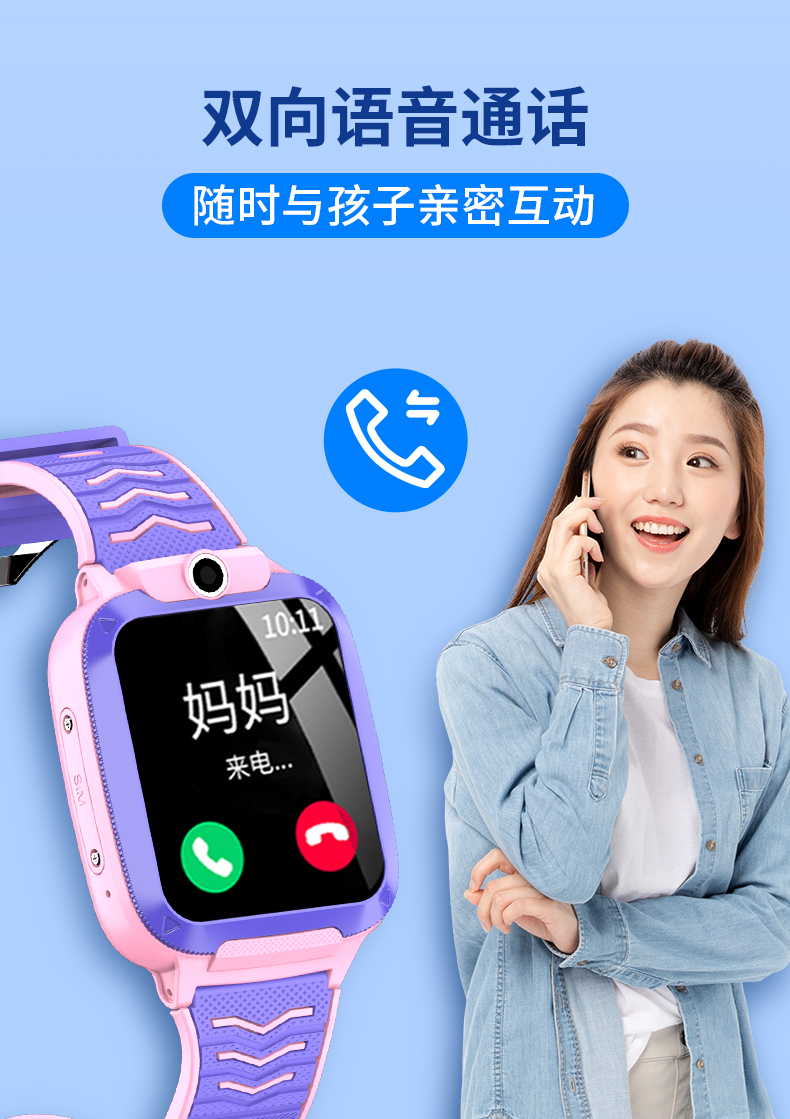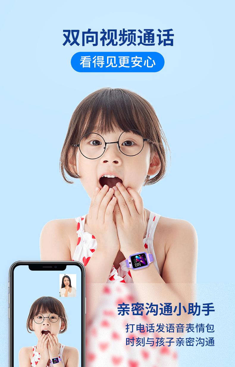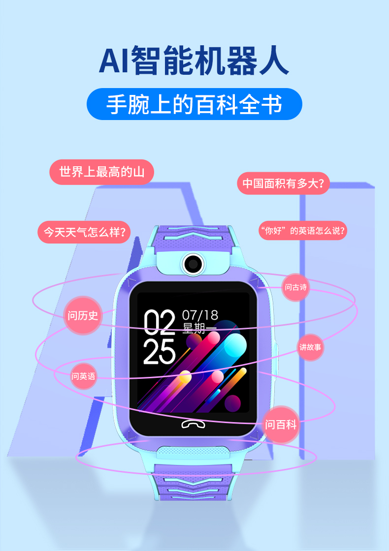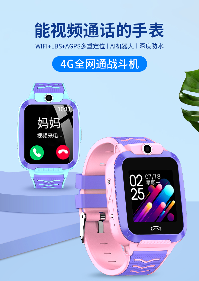 4G全網通(tōng)、視頻(pín)通(tōng)話(huà)、AI機器人(rén)、高(gāo)清拍(pāi)照(zhào)、支付寶、精準定位、IP67防水(shuǐ)、雙向通(tōng)話(huà)