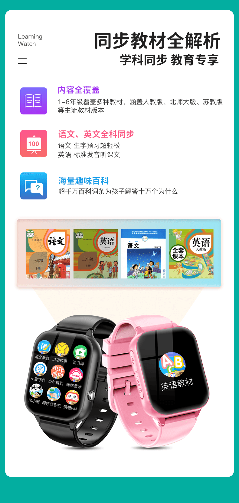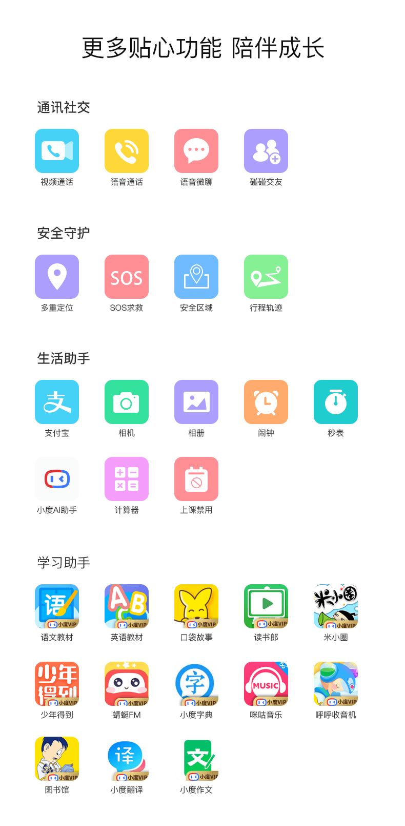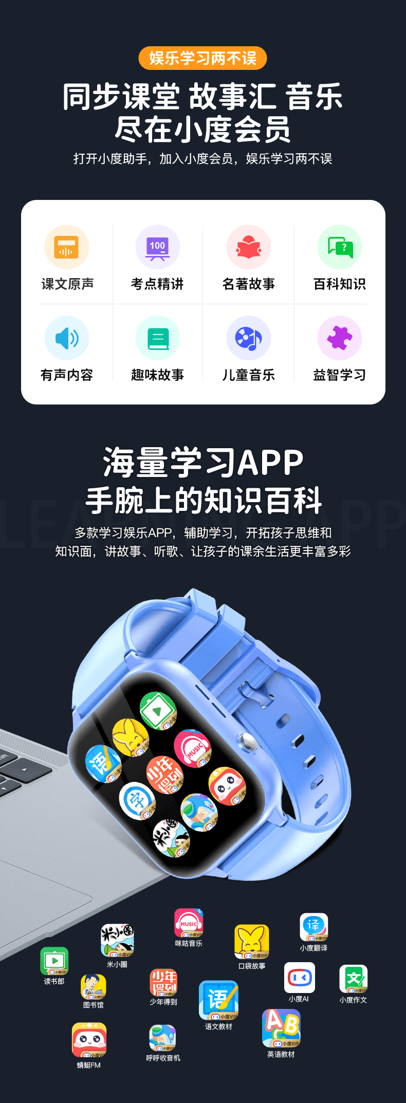 超長(cháng)待機7天、高(gāo)韌度ABS、AI機器人(rén)、視頻(pín)通(tōng)話(huà)、支付寶、學習(xí)APP、精準定位、IPS高(gāo)清顯示屏、深度防水(shuǐ)